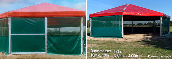Die Longierhalle ist der Fitness- und Gymnastikraum für Pferde. Mit diesem Hallensystem können Pferde unter idealen Bedingungen das ganze Jahr bewegt und trainiert werden. Die Longierhalle ist in drei verschiedenen Größen verfügbar. Das umfangreiche Zubehör an Beleuchtungs- und Bewässerungssystemen sowie Banden perfektioniert die Longierhalle. Das System ist nach den gültigen Bauwerksnormen für feste und fliegende Bauwerke statisch berechnet und kann somit zur temporären als auch zur dauerhaften Installation genutzt werden. Die einfache Verwendung von Erd- oder Schraubankern, Schwerlastdübeln, Punkt- oder Streifenfundamenten ist für die Installation ausreichend. Aufgrund der mobilen und durchdachten Konstruktion lässt sich das System im Gegensatz zu konventionellen Hallen an fast jedem Standort innerhalb kürzester Zeit montieren. Der Einsatz von hochwertigen und langlebigen Materialien trägt maßgeblich zu der entspannten und angenehmen Wohlfühl-Atmosphäre bei, von der Pferd und Reiter gleichermaßen profitieren. Die Gerüstkonstruktion besteht aus Aluminium, die Verbindungsteile wie Trauf- und Firsteinschübe bzw. Fußpunkte und Pfetten aus feuerverzinkten Stahlelementen. Sporthaus VERDEN vertraut bei der Dach- und Wandverkleidung auf eine unverwüstliche textile Eindeckung, die aus einem hochwertigen Trägermaterial mit PVC-Beschichtung besteht. Dieses wird unter anderem auch als Abdeckung von Bioheizkraftwerken eingesetzt und beweist bereits seit Jahren seine Widerstandsfähigkeit und Robustheit. Die Abspannung der textilen Verkleidung erfolgt mit Stahlspannern und Spanngurten. Dies sorgt für eine dauerhaft sichere und bewegungsarme Passform und verhindert somit störende Geräusche. Der Eingangsbereich der Longierhalle wird mit einem Schiebetor verschlossen, das dank kugelgelagerter Rollen leicht geschoben werden kann. Prüfen Sie uns. |